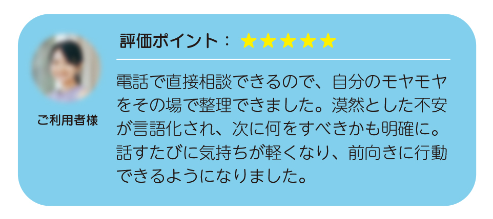 通話だからこそ、声のトーンを感じながらやり取りできるので、安心感と納得感を得ながら相談を進められます。