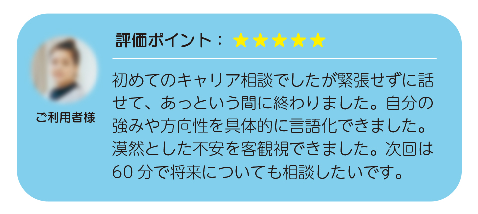 話すことで頭の中のモヤモヤを言語化でき、プロのキャリアコンサルタントがあなたの状況に合わせて具体的なアドバイスを提供します。