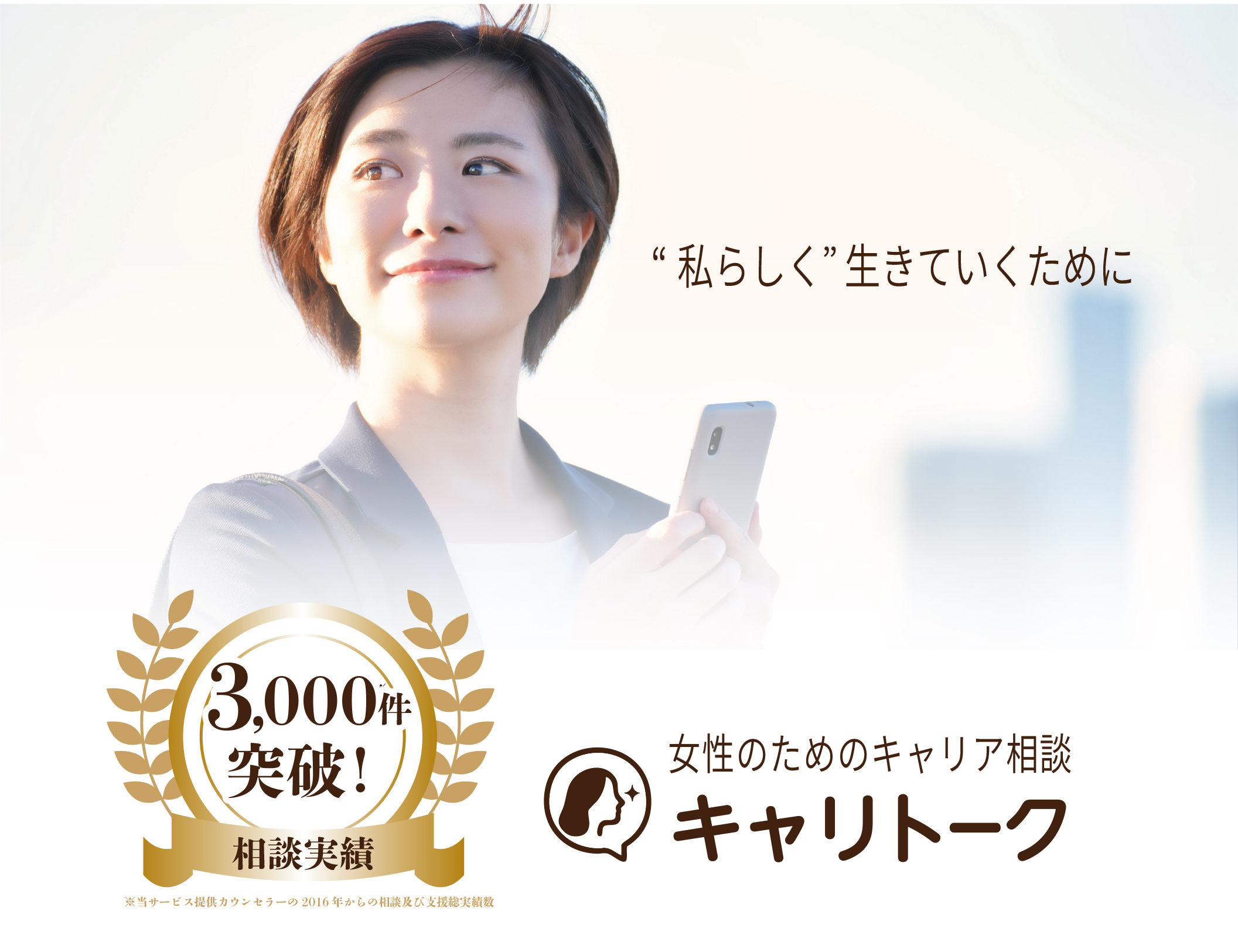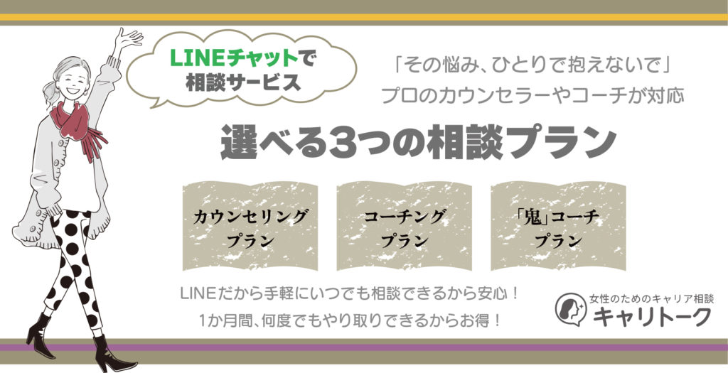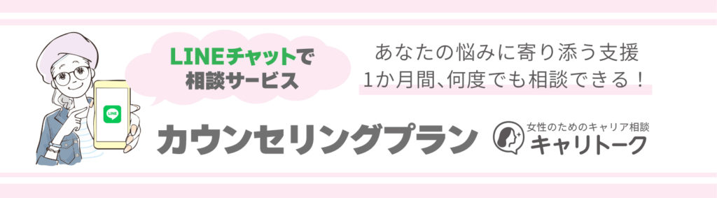 キャリトークは働く女性のキャリア・ライフ・家庭に関する様々な悩みを対象とした、LINE通話・LINEチャットでの相談サービスです。